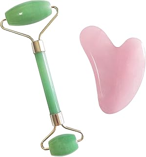 Mina Heal美顔カッサプレート 天然石 フェイスマッサージャーピンク色水晶ローズクォーツとジェイドローラ 2個セット