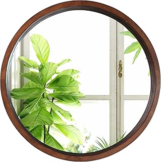 Mirrorize Mina 装飾モダン木製フレーム ラウンドミラー 直径30インチ ウォールナットブラウン