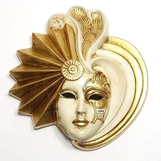 イタリア製 ゴールド アイボリー ベネチア 仮面 羽根 Lサイズ 壁掛け 25x27cm bce-03l