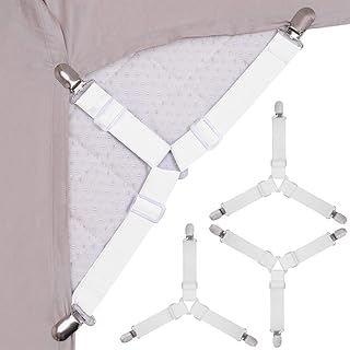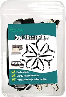Aclolo ベッドシーツクリップ 調節可能 ズレ防止クリップ ベッドシーツズレ落 あなたのベッドシート、ソファのスリップカバー、テーブルクロスを定位置に保つ 50〜200cm 4本 (ホワイト)