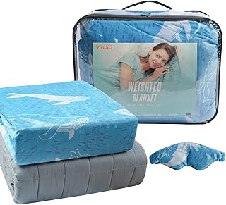 Vivilandウェイトブランケット 掛け布団 加重毛布 加重布団 重力ブランケット 重い毛布 100%綿 150×200cm 7kg 不眠症対策 敏感肌適合 リラックス ストレス解消 3ピースセット:カバー、重い毛布、アイマスク