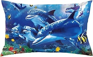 FEAIYEA ブルーシーワールド コーラルイルカ スロークッションカバー 長方形 リビングシリーズ 装飾スロー 枕カバー 両面デザイン 29.9インチ x 19.6インチ ファミリーインドアソファ 車