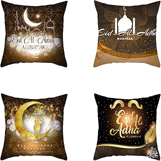 HHOCN コーバン枕カバー イスラム風ブラウン 正方形 スローピローケース ソファベッド カウチ スロークッションカバー 装飾(18インチ x 18インチ) 4ピース