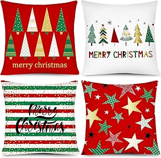 Whaline クリスマス枕ケース メリークリスマス枕カバー クリスマスツリー 星 スロークッションカバー レッド グリーン クッションカバー 自宅 オフィス ソファ ベッド クリスマスパーティー装飾 4点 18インチ x 18インチ