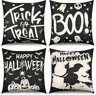 ASTARON 18 x 18インチ ハロウィン枕カバー コットンリネン スロークッションカバー ハロウィンデコレーション用 4枚