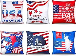 Geiserailie 独立記念日枕カバー 18 x 18インチ 7月4日 スロークッションカバー 愛国的なアメリカ国旗枕カバー ホームパーティーの装飾用 6枚