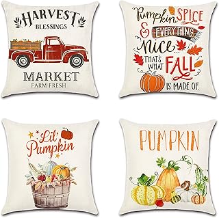 Jetec 4ピース 枕カバー スロークッションカバー コットンリネン枕 装飾 ハロウィン 感謝祭 クリスマス 秋 18 x 18インチ (目を引くカラー)