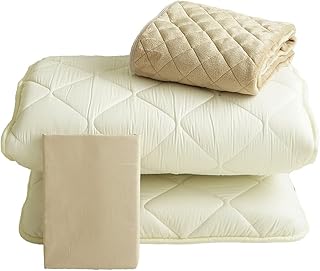 ええふとんや 小さめの敷き布団 増量タイプ 暖か敷きパッド 専用カバー 3点セット ロングサイズごろ寝マット 幅が狭い 70×200 3P(DX・FP MK) (ベージュ)