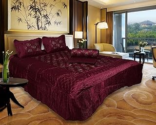 ManavRachit Self Design Gold Printed Designer Satin Silk Wedding Bedding Bedsheet Set of 4 pcs [1 Double Bed Bedsheet:: 2 Pillow Cover:: 1 Double Bed AC Comforter]