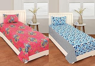 Home Stylish Peresent Premium Cotton 144 Tc Cotton Single bedsheet with 1 Pillow Covers Multi Box