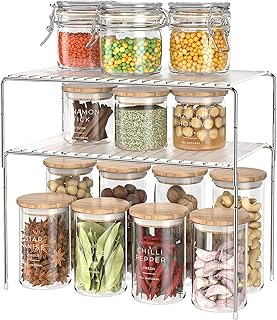 YASONIC 積み重ね可能なキャビネットシェルフ カウンタートップ スパイスラック 拡張可能な多目的ストレージ ステンレススチール カウンターシェルフオーガナイザー 交換可能な脚3セット キッチン 寝室 浴室用 (2個パック)
