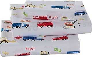 Better Home Style マルチカラー クレーン バックホー 建設用品 トラック 消防エンジンデザイン 子供/男の子用 3点セット 枕カバー付き フラットシーツ # クレーン クイーン