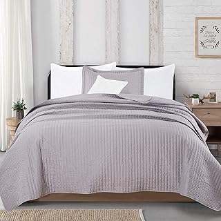 Great Bay Home チャンネルステッチキルトセット 枕カバー付き Aliciaコレクション ベッドスプレッドキルトセット オールシーズン ツイン グレー EC700049