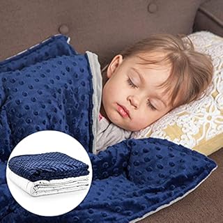 Roore 10ポンド 加重ブランケット 子供用 I 41x60 I 重みのあるブランケット ミンキーの取り外し可能なカバー付き プレミアムガラスビーズ付き 80~125ポンドの子供に最適 (ブルー 10ポンド 41x60インチ)