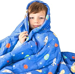 VECOKNA 加重ブランケット 子供用 リバーシブル 重みのあるブランケット 宇宙船 (41x60インチ 10ポンド)