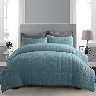 HollyHOME ソフト 3ピース ライトブルー シアサッカー 掛け布団セット キングサイズ