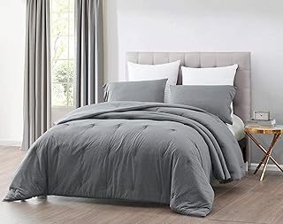 Bedream グレー 掛け布団セット 3ピース クイーンサイズ ピンタック フリル付きレース寝具セット - シャビーシック プレウォッシュ加工マイクロファイバー - 天然しわ&お手入れ簡単 - 通気性(C6)