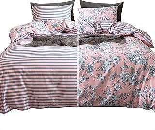 doudoumum リバーシブル 花柄プリント 掛け布団カバーセット コットン100% 寝具3点セット 掛け布団カバーと枕カバー2枚 ジッパー開閉 超ソフト 快適 通気性 色あせ防止 Queen Set ピンク