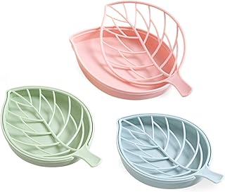 Ahn'Qiraj 3個 リーフ型 ソープボックス プラスチックソープホルダー 排水ホルダー付き ソープディッシュ ダブルソープストレージトレーコンテナ バスルームキッチンカウンターまたはシンク用 (ブルー、ピンク、グリーン)