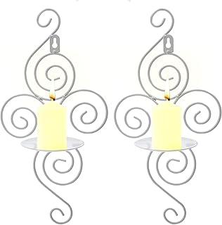 Dyna-Living 壁掛けキャンドル燭台 2個セット キャンドルホルダー エレガントな渦巻き 鉄製 壁掛け キャンドルホルダー 燭台 ホームデコレーション 結婚式 イベント用 (ホワイト)
