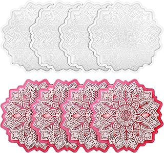 フラワーコースター 樹脂型 - 2サイズ Gartful Lサイズ シリコーン製 フラワーコースター型 エポキシ樹脂鋳造 人工メノウスライス カップマット キャンドルホルダー ソープディッシュ ホームデコレーション 4個パック
