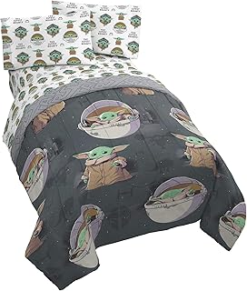 スターウォーズ マンダロリアン ザ・チャイルド 5ピースフルベッドセット - リバーシブル掛け布団&シーツセット - 寝具はベビーヨーダ - スーパーソフト 色あせ防止マイクロファイバー(スターウォーズ公式製品)