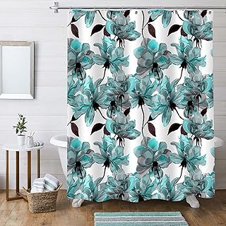MitoVilla ティール水彩フラワーシャワーカーテン 抽象的な花柄パターン 青いバラと黒い葉 浴室装飾 春 芸術的 エレガントでモダンなホームインテリア 女性用 幅72インチ x 長さ78インチ
