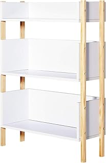 LAPTAIN 本棚 オープンシェルフ ラック 3段 幅64.5×奥行25×高さ90cm スリム 組立かんたん 木製 おしゃれ 収納棚 キッチン収納 フラワーラック ディスプレイラック 洗面所収納 (三段, ホワイト&ナチュラル)