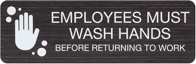 Employees Must Wash Hands インドア 簡単粘着マウントドアとウォールサイン レストランや小規模ビジネス用 3インチ x 9インチ ダークウッド