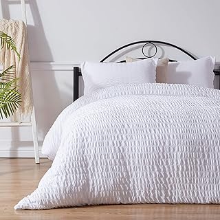 AveLom シアサッカー 掛け布団カバーセット フルサイズ (80 x 90インチ) 3点 (掛け布団カバー1枚 + 枕カバー2枚) ダークグレー ウルトラソフト ウォッシュ加工 マイクロファイバー 質感のある掛け布団カバー ジッパー開閉 コーナータイ