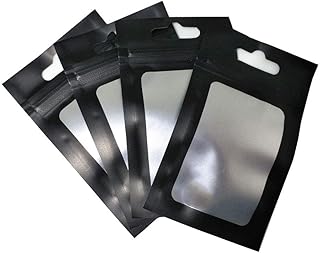 アルミ ジッパー 保存袋 窓バッグ 食品用 ジップロック チャック袋 コーヒー ナッツ キャンディ 小分け袋 保存用バッグ 100枚入 吊り穴付き (ブラック, 12 x 20 cm)