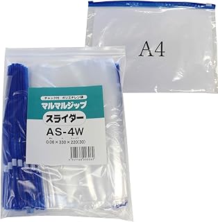 スライダー付きポリ袋 50枚入 AS-4W(青) A4サイズ 横330×縦110(mm) マチ付き イージージッパー フリーザーバッグ マルマルジップスライダーワイド チャック袋 ジップ袋 ジッパー スライド式 ビニール袋