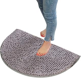 yuchurey 玄関マット 半円 半円形マット 北欧 屋外 屋内 無地 洗える 泥除け 汚れ防止 滑り止め 吸水 触さよい 抗菌 バスマット 絨毯 おしゃれ インテリア バスマット 吸水 お風呂マット ふわふわ 速乾 丸洗い 滑り止め付 (グレー)